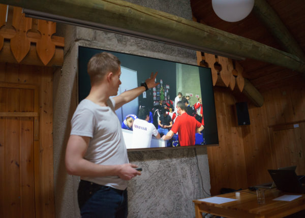 Leygarmorgunin byrjaði við stuttligum ‘team building’ aktivitetum undir leiðslu av ítróttarsálarfrøðiliga ráðgevanum Jón Gregersen, áðrenn vit upphitaði fóru undir hugarok til at avgera hvat sum vit vildu gera seinni sama dag, og sunnumorgunin.