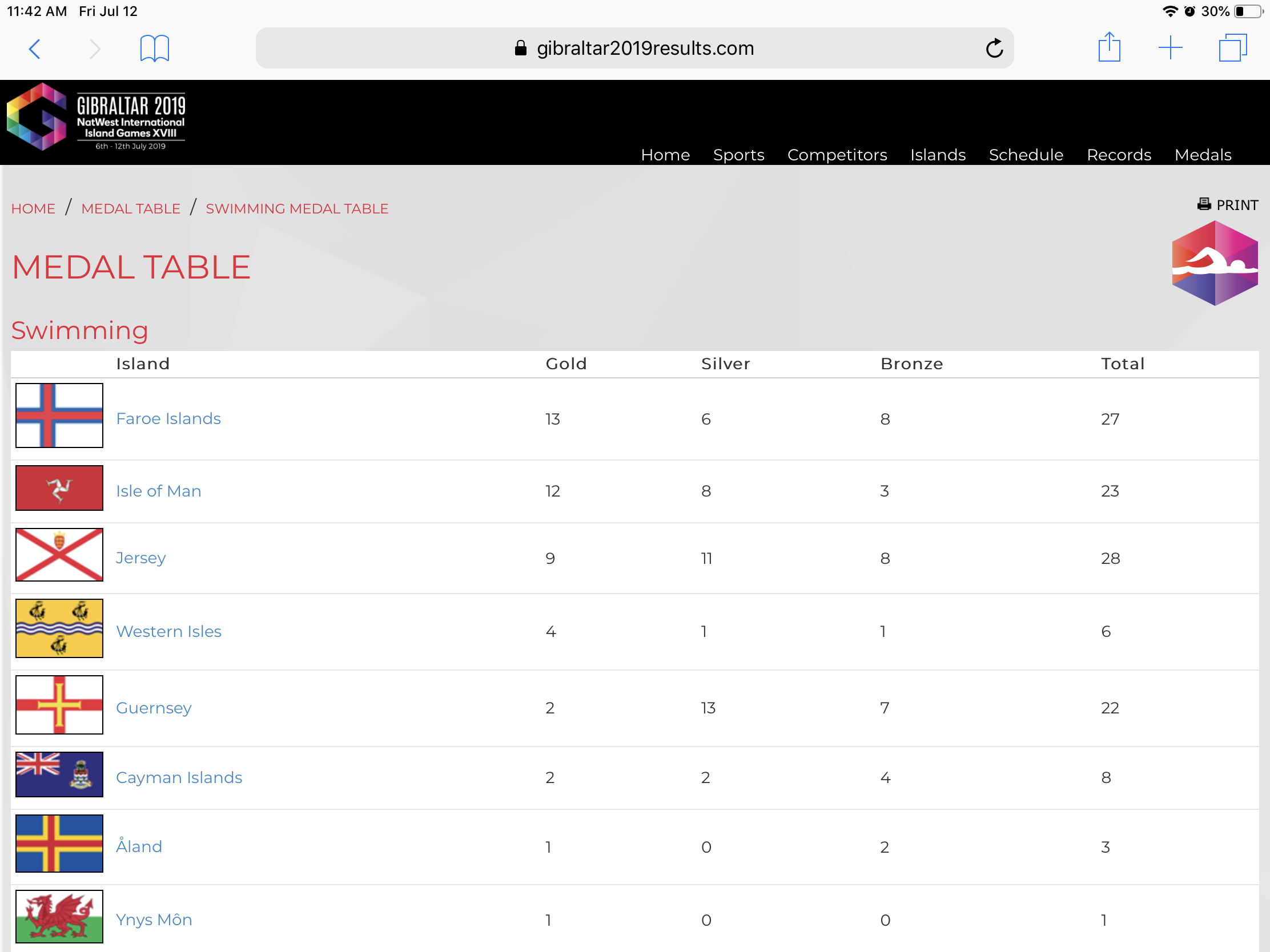 Har var rættingin, vit endaðu sum nr 2 https://www.gibraltar2019results.com/medal.aspx?ShowSportMedalTable=True&SportID=16