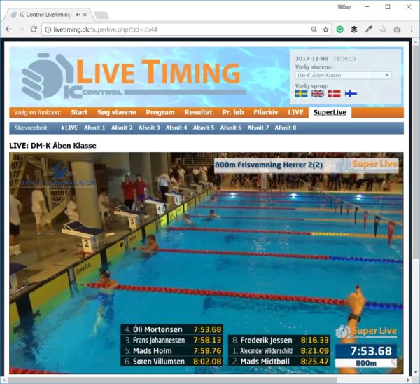 Óli Mortensen vann fyri løtu síðani gull á donsku meistarastevnuni á stuttgeil 2017 – og Frans Johannessen silvur – tá ið finalan í 800 metra frísvimjing fyri menn varð avgreidd. Tíðin 7:53.68 er stórt nýtt persónligt met hjá Óla, í mun til hansara 7:57.56 frá tá ið hann vann gull í somu grein á DM á stuttgeil í fjør.
